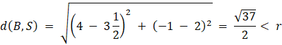 W tym zadaniu musisz sprawdzić, czy odległość podanych punktów od środka kołom jest mniejsza bądź równa długości promienia tego koła.