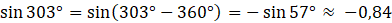 Oblicz sinus kąta 303°:
