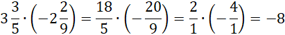 Włącz całości do ułamków, skróć ułamki ze sobą, a następnie wymnóż czynniki.