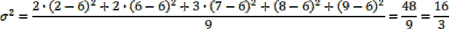Na podstawie danych oblicz średnią arytmetyczną, wariancję i odchylenie standardowe liczb 2, 2, 6, 6, 7, 7, 7, 8, 9.