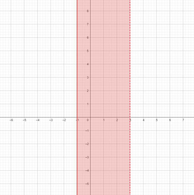 Zbiór punktów spełniających nierówność tworzy półpłaszczyznę (lewostronnie domkniętą, bo znak nierówności jest mocny) zawartą między prostymi oraz .