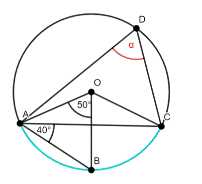|∡AOC| = 50° + 80° = 130°