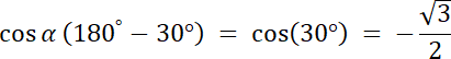 W tym zadaniu należy skorzystać ze wzoru redukcyjnego: cos(180°–α) = –cos α, a następnie odczytać wartość funkcji trygonometrycznej i podać rozwiązanie.