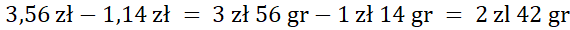 2 zł 42 gr + 1 zł 14 gr = 3 zł 56 gr