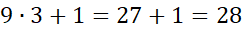28 : 3 = 9 r 1, bo