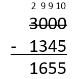 W tym zadaniu musisz wykonać odejmowanie pisemne 3000 - 1345.