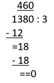 W tym zadaniu musisz wykonać dzielenie 1380 ∶ 3 sposobem pisemnym. Sprawdź swój wynik.