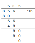 0,856: 0,016: 0,5 = 856: 16; 0,5 = 53,5: 0,5 = 535: 5 = 107