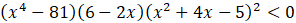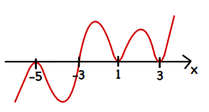 Aby rozwiązać nierówność, rozłóż wielomian dany po prawej stronie na czynniki możliwie najniższego stopnia. W tym celu wykorzystaj wzór skróconego mnożenia na różnicę kwadratów (dwukrotnie), z czynnika 6 – 2x wyłącz przed nawias -2 oraz trójmian x2 + 4x – 5 rozłóż na czynniki. Z danej postaci iloczynowej wielomianu odczytaj jego pierwiastki, na podstawie których naszkicuj wykres wielomianu. Z wykresu odczytaj rozwiązania.