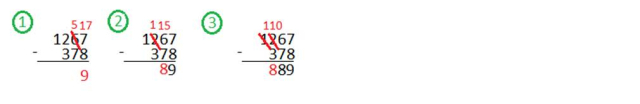 W tym zadaniu musisz obliczyć sumę 1267 - 378 sposobem pisemnym.