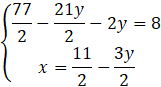 Rozwiąż układ równań metodą podstawiania. Z jednego z równań wyznacz zmienną y, a następnie wstaw ją do drugiego równania, wyznaczając zmienną x. Kolejno oblicz drugą niewiadomą.