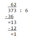 Wykonaj dzielenie 373 : 6 i zapisz resztę z dzielenia.