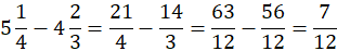 Zamień mieszany na ułamek niewłaściwy. Następnie sprowadź ułamki do wspólnego mianownika i wykonaj odejmowanie.
