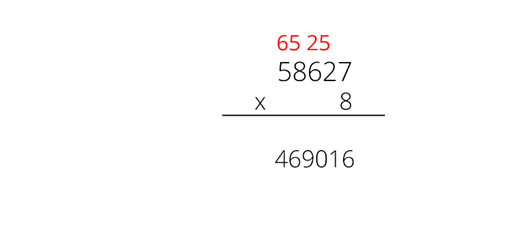 Mnożąc sposobem pisemnym, mnożymy każdą liczbę przez czynnik i zapisujemy tak jak w odejmowaniu czy dodawaniu, liczbę jedności a liczbę dziesiątek zapisujemy nad i dodajemy do kolejnego wyniku mnożenia.