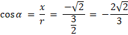 który należy do ramienia końcowego kąta ostrego α. Należy obliczyć wartość funkcji trygonometrycznej tego kąta.