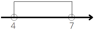 Jest to przedział otwarty, więc przy każdej liczbie musi być niezamalowany okrąg.