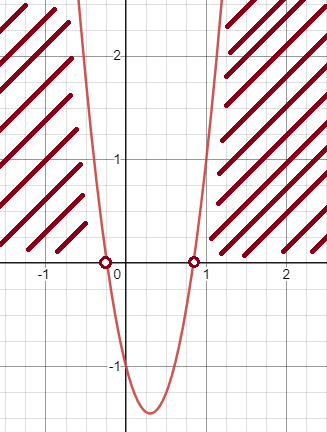 W pierwszej kolejności szukamy miejsc zerowych. Następnie rysujemy parabolę z ramionami skierowanymi w górę, bo współczynnik przy najwyższej potędze jest dodatni. Punkty przecięcia paraboli z osią to miejsca zerowe