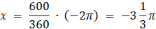 Miarę łukową kąta podanego w stopniach możesz wyznaczyć, korzystając z informacji, że -360o to -2π radianów, i układając odpowiednią proporcję:
