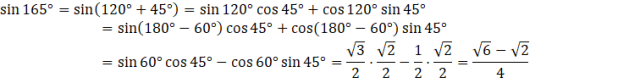 Mając dane sin 165° oraz wzory funkcji trygonometrycznych na sumę i różnicę ich kątów, wyznacz podaną liczbę.