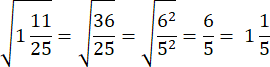 Zamień liczbę mieszaną na ułamek niewłaściwy. Następnie rozbij pierwiastek na potęgi liczb, aby zredukować znak pierwiastka.