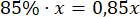 Przedstaw liczbę o 15% mniejszą od x