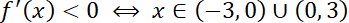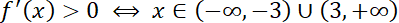 Zauważ, że w punkcie x = -3 pochodna zmienia znak z dodatniego na ujemny, czyli jest maksimum lokalne, a w punkcie x = 3 – z ujemnego na dodatni, czyli jest to minimum lokalne.