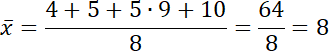 Na podstawie danych, oblicz średnią arytmetyczną, wariancję i odchylenie standardowe liczb 4, 5, 9, 9, 9, 9, 9, 10.