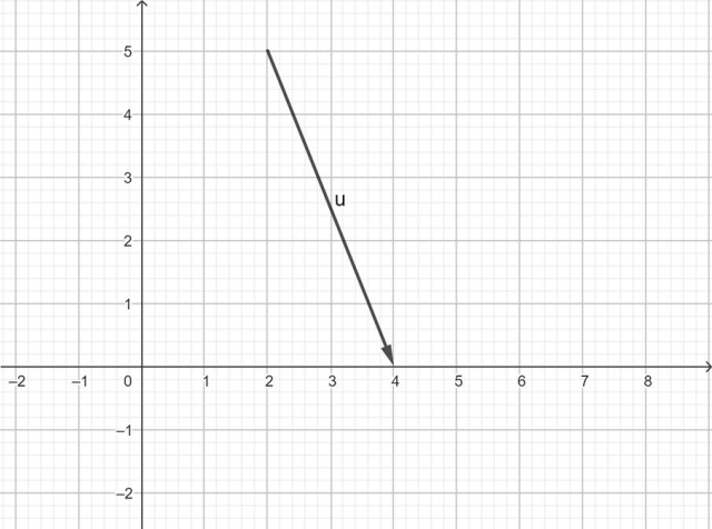 Najpierw wybierz dowolny punkt w układzie współrzędnych, z którego chcesz zacząć rysować wektor. Współrzędna x - owa wektora wynosi 2, więc o tyle przesuwamy nasz wektor na osi OX. Współrzędna y - owa wektora wynosi - 5, więc o tyle przesuwamy nasz wektor na osi OY. Ze względu na to, że współrzędna jest ujemna, wektor rysujemy od góry do dołu.