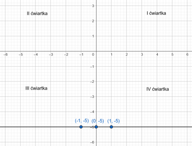 Zaznacz uzyskane punkty w układzie współrzędnych, narysuj prostą przechodzącą przez nie i zapisz przez które ćwiartki układu współrzędnych ona przechodzi.