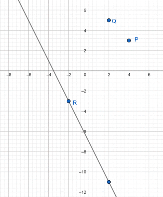 Na koniec ustal, które z podanych punktów P, Q, R należą do wykresu podanej prostej.