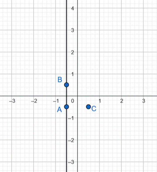Zaznacz punkty A i B podane w treści zadania w układzie współrzędnych, narysuj prostą przechodzącą przez nie i sprawdź, czy na powstałym wykresie znajduje się także punkt C.