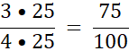 Na rysunku zamalowano 3 kwadraty z czterech, czyli ¾. Rozszerz ułamek do 100 w mianowniku: