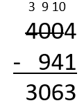W tym zadaniu musisz wykonać odejmowanie pisemne 4004 – 941.