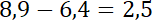 Przyjrzyj się wyrażeniu: od liczby 8,9 musisz odjąć 0,4, aby otrzymać taką samą liczbę po przecinku i liczbę 6, by różnica wyniosła 2,5.