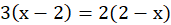Rozwiąż równanie 3(x – 2) = 2(2 - x), a następnie sprawdź jego rozwiązanie.