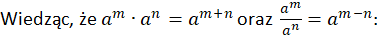 W tym zadaniu korzystając ze wzoru na iloczyn i iloraz potęgi o tej samej podstawie zapisz wyrażenia w postaci potęgi.