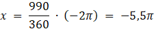 Miarę łukową kąta podanego w stopniach możesz wyznaczyć, korzystając z informacji, że -360o to -2π radianów, i układając odpowiednią proporcję: