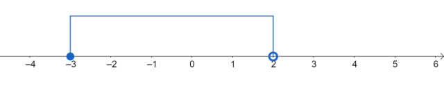 Zaznacz początek i koniec przedziału i wszystkie liczby pomiędzy. Przedział jest domknięty na -3, więc kropka ta powinna być zakolorowana i otwarty na 2, więc kropka ta powinna być niezakolorowana.