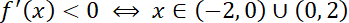 Zauważ, że w punkcie x = -2 pochodna zmienia znak z dodatniego na ujemny, czyli jest maksimum lokalne, a w punkcie x = 2 – z ujemnego na dodatni, czyli jest to minimum lokalne.