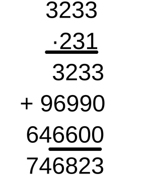Wykonując mnożenie pisemne przez liczbę wielocyfrową, należy najpierw pomnożyć cyfrę jedności liczby, przez którą mnożysz, przez cyfrę jedności drugiej liczby. Jeśli otrzymana liczba jest dwucyfrowa, należy cyfrę jedności takiego wyniku zapisać pod słupkiem cyfr jedności, a cyfrę dziesiątek z wyniku trzeba przenieść dalej poprzez dopisanie tej cyfry nad kolejnym w lewo słupkiem, czyli słupkiem cyfr dziesiątek. Przy mnożeniu kolejnego słupka, do wyniku dodaje się przeniesioną cyfrę ze słupka wcześniej. W taki sam sposób należy mnożyć każdą kolejną cyfrę, zaczynając od lewej i idąc do prawej. Jeśli w ostatnim słupku wyjdzie liczba większa od 10, to już nie wolno przenosić dalej, bo nie ma kolejnego słupka, lecz należy napisać całą liczbę. Po pomnożeniu przez cyfrę jedności należy wykonać te same operacje, mnożąc przez kolejne cyfry, zaczynając od dziesiątek. Z każdą kolejną cyfrą, przez którą mnożysz w sekcji dodawania, dopisuj z prawej strony jedno zero. Na końcu wykonaj dodawanie pisemne. Dodawaj kolejno każdy ze słupków, począwszy od jedności, a gdy po dodaniu wynik będzie dwucyfrowy, to liczbę jedności zapisz pod tym słupkiem, a liczba dziesiątek przejdzie dalej do następnego słupka.