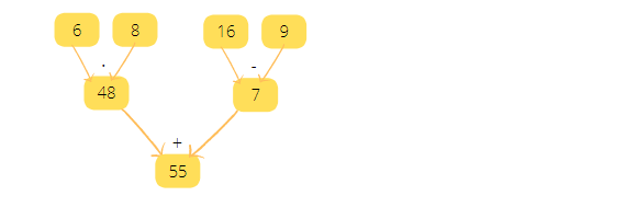 6 ∙ 8 + (16 - 9) = 48 + 7 = 55