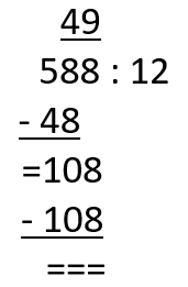 W tym zadaniu musisz wykonać dzielenie 588 ∶ 12 sposobem pisemnym. Sprawdź swój wynik.