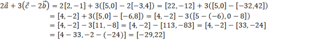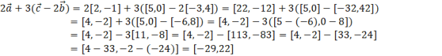 Aby zrobić to zadanie, musisz wymnożyć wektory razy liczbę przed nimi, a następnie wykonać dodawanie i odejmowanie (pamiętaj o kolejności wykonywania działań).