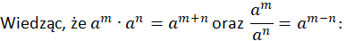 W tym zadaniu korzystając ze wzoru na iloczyn i iloraz potęgi o tej samej podstawie zapisz wyrażenia w postaci potęgi.