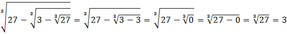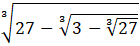 W tym zadaniu musisz obliczyć najpierw wewnętrzny pierwiastek sześcienny. Otrzymany wynik musisz odjąć od 3 i spierwiastkować pierwiastkiem trzeciego stopnia. Ten wynik musisz odjąć od 27 i ponownie spierwiastkować pierwiastkiem trzeciego stopnia.