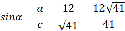 Aby obliczyć wartości trygonometryczne kątów podstaw długości boków do wzorów:
