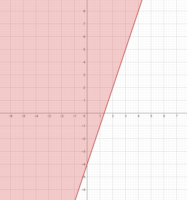 Zbiór punktów spełniających nierówność tworzy półpłaszczyznę (domkniętą, bo znak nierówności jest słaby) nad prostą .
