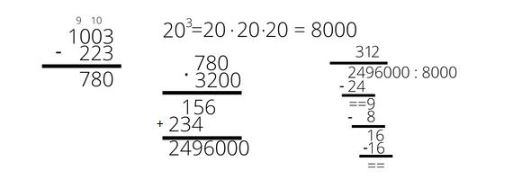 (1003 – 223) ∙ 3200 : 203 = 780 ∙ 3200 : 8000 = 2496000 : 8000 = 312