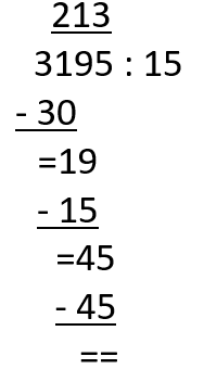 sprawdzenie: 15 · 213 = 3195