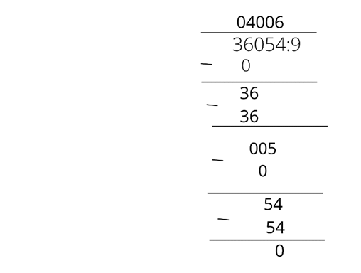 Sprawdzamy, ile 9 mieści się w 3, ani jedna, a więc zapisujemy nad kreską 0 i mnożymy 0 razy 9. Wykonujemy odejmowanie. Zostaje nam liczba 3 i przepisujemy 6 zapisane powyżej, i teraz zastanawiamy się, ile 9 mieści się w 36. Robimy tak z każdą liczbą po kolei. Jeśli zrobimy tak, z wszystkimi liczbami a na dole pozostanie nam cyfra inna niż 0, to oznacza, że jest to reszta z dzielenia.